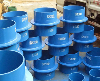 A型剛性防水套管是鋼管外加翼環(huán)(鋼板做的環(huán)形套在鋼管上),裝于墻內(nèi)(多為混凝土墻),用于一般管道穿墻,利于墻體的防水;柔性防水套管除了外部翼環(huán),內(nèi)部還有檔圈之類(lèi)的,法蘭內(nèi)絲,有成套賣(mài)的,也可自己加工,用于有減震需要的管路,如和水泵連接的管道穿墻時(shí)。也就是說(shuō),如果考慮墻體兩面的防水性能,就要選用柔性防水套管;如果僅僅是考慮管道的穿墻,而不考慮穿墻后,墻體兩面的防水性能以及管道的位移變形,就選用剛性防水套管。